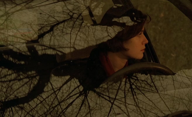 波兰维罗妮卡死去,法国维罗妮卡第六感官意识到不能再继续歌唱事业,开车到指挥那里去辞职[A:33:06; 32:53],开车的镜头亮了两下,第一次背景模糊,第二次背景清晰,几秒钟的镜头就交代了从犹豫不决到痛下决定的心理变化。