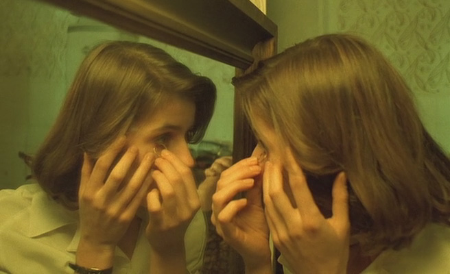 镜子,各种各样的反射镜和透镜,是本片运用最多的道具。镜中的影像,为两个维罗妮卡的联系提供了最好的暗示手法。
