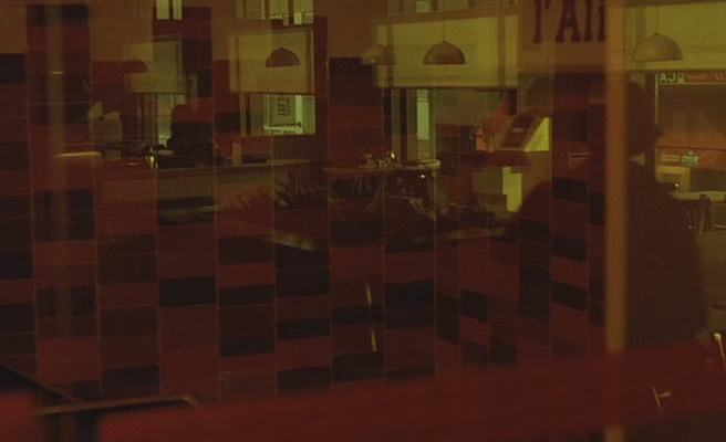 [B:20:24; 1:09:19]维罗妮卡推门进入咖啡厅,玻璃门反射出她的背影。